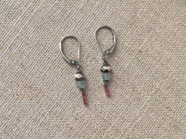 Aquamarine, pink tourmaline, sterling & Thai silver. Earrings close with sterling leverbacks for a comfortable and secure fit.