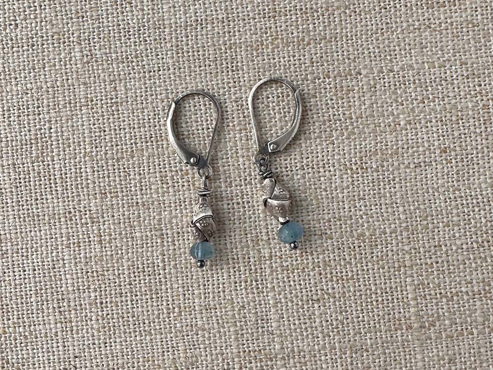 Aquamarine, sterling & Thai silver. Earrings close with sterling leverbacks for a comfortable and secure fit.