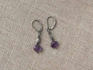 Amethyst, sterling & Thai silver. Earrings close with sterling leverbacks for a comfortable and secure fit.