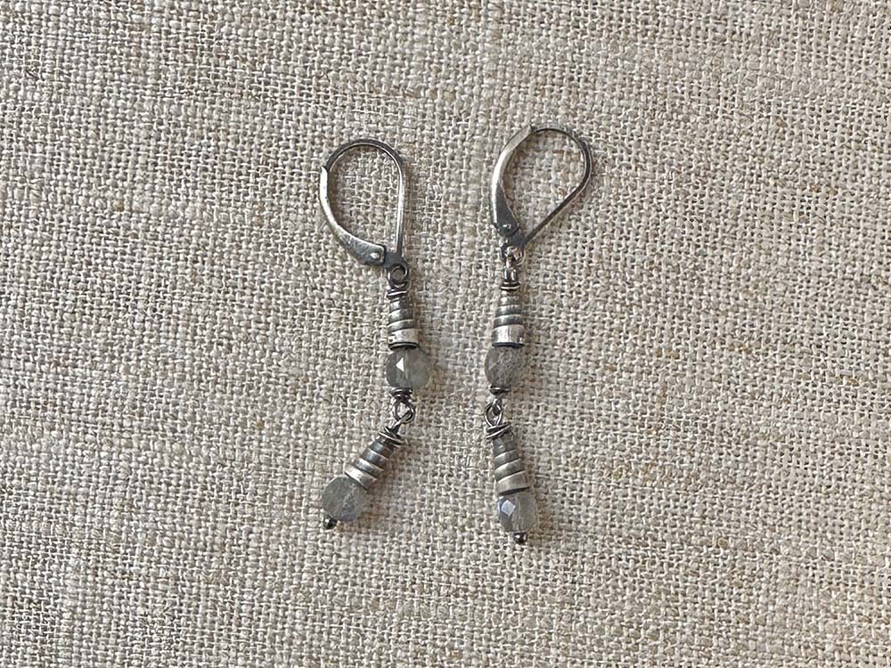 Labradorite, sterling & Thai silver. Earrings close with sterling leverbacks for a comfortable and secure fit.