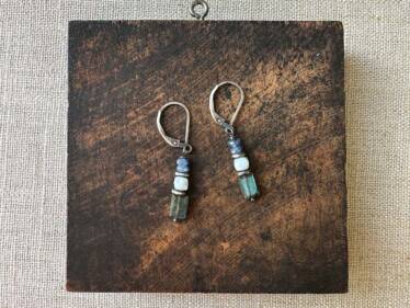 Labradorite & Larimar Stack Earrings give cool water vibes. Faceted labradorite topped with larimar, kyanite and accents of Thai silver. Beachy and perfect for every day.