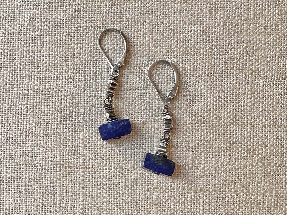 Lapis, sterling & Thai silver. Earrings close with sterling leverbacks for a comfortable and secure fit.