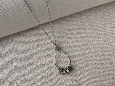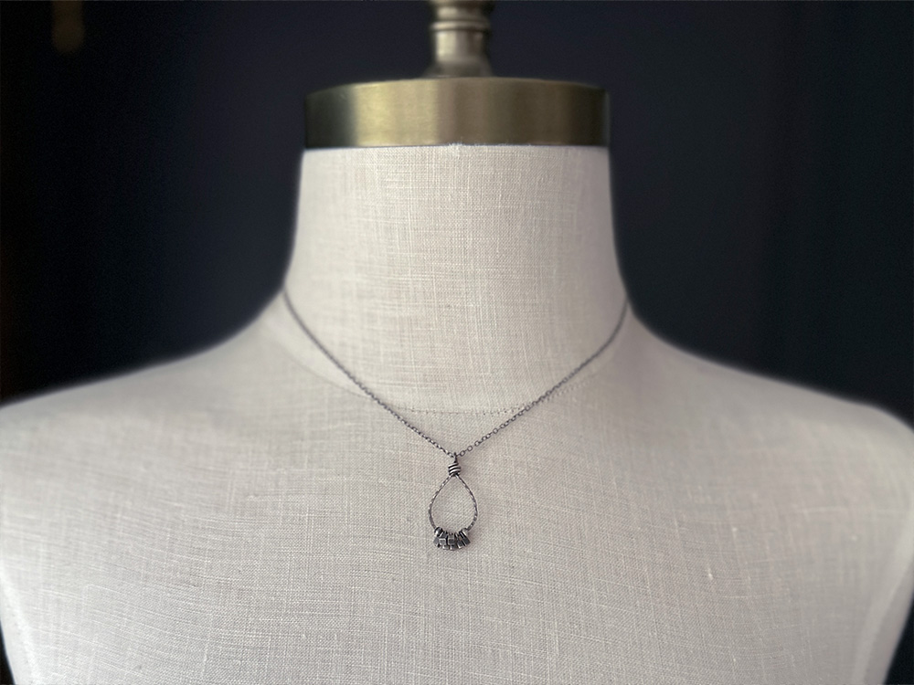 The Sterling ‘On the Fringe’ Pendant is full of sass. Pendant is created with sterling wire, hammered, and set with delicate silver cubes and Thai silver accents. Oxidized finish is hand-polished to enhance the textured surface. Lightweight and easy to wear. Perfect for layering.