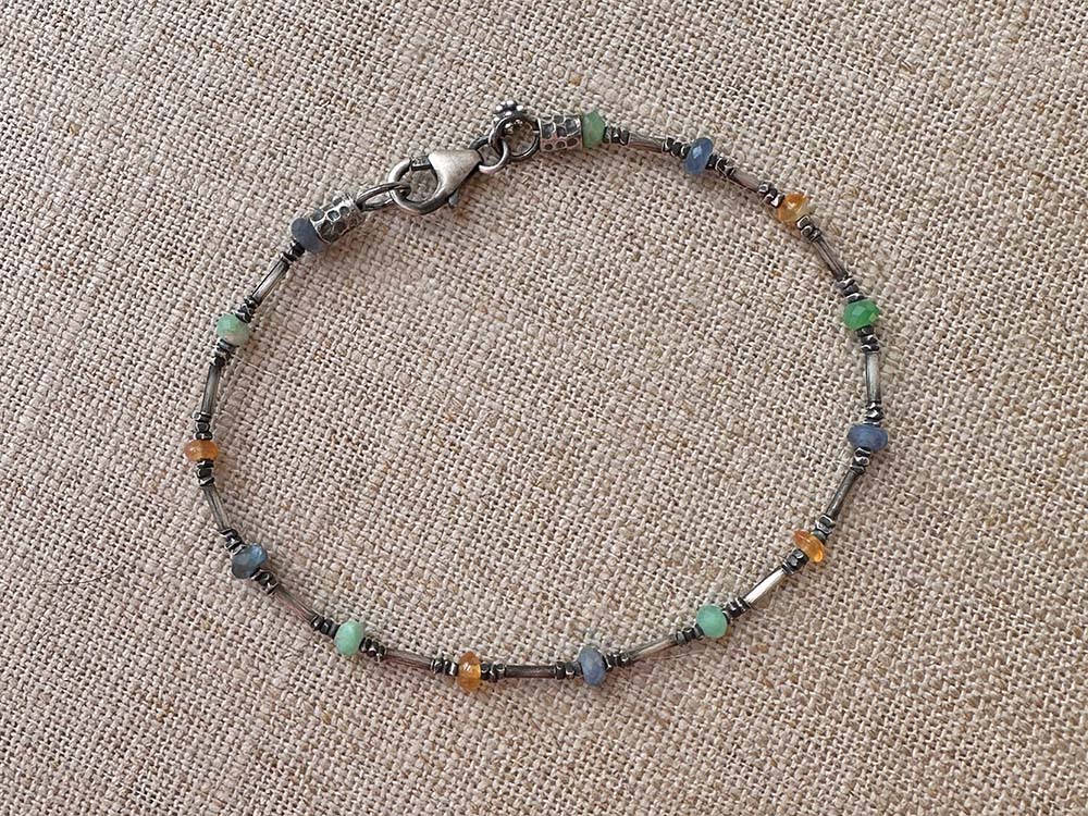 Made to bring sunny days to your doorstep regardless the weather. The Sunscape Gemstone Bracelet unites a cheerful combination of gemstones with oxidized sterling silver. Slender and lightweight. Perfect for layering with all of your favorites.