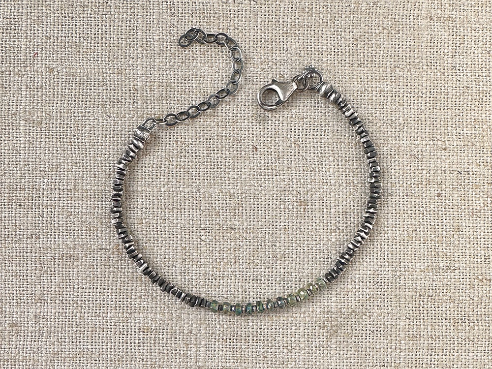 Green sapphire, sterling & Thai silver. Bracelet closes with a lobster clasp and signature daisy charm.