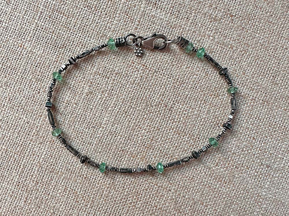 Apatite, sterling & Thai silver. Bracelet closes with a sterling lobster clasp and signature daisy charm.
