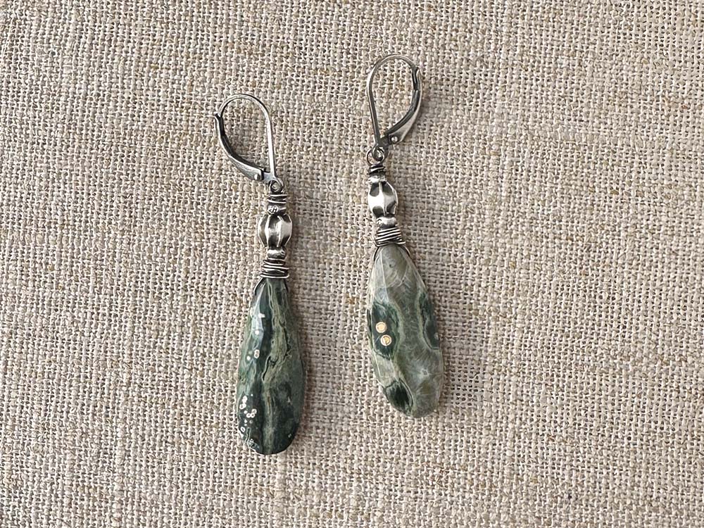 Ocean jasper, sterling & Thai silver. Earrings close with sterling leverbacks for a comfortable and secure fit.