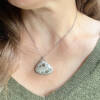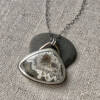 Pendant measures 1″x1.25″ wide & swings from an oxidized, adjustable, 18-inch sterling silver chain.