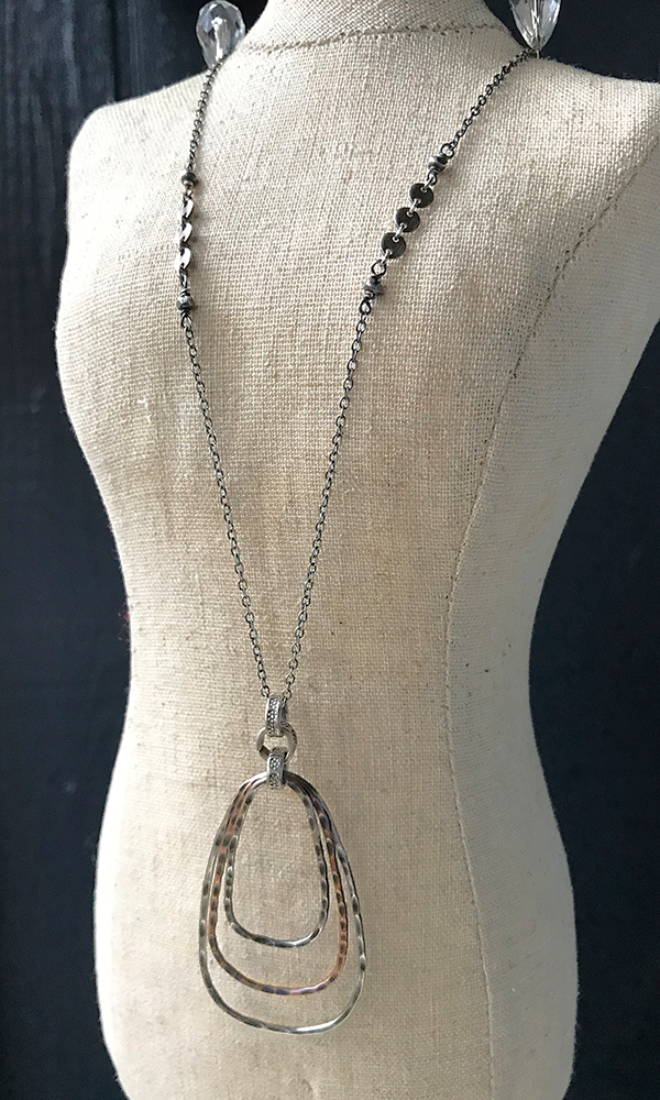 Mixed metals are on trend and look spectacular in our Copper & Sterling Ring Pendant. Simple, classic and easy to style, you can’t lose with this necklace. Oxidized 30 inch chain with contrasting chain accents. Free-swinging pendant, comprised of both copper and sterling, has hammered finish. Wear this piece alone, or layered for a look all your own.