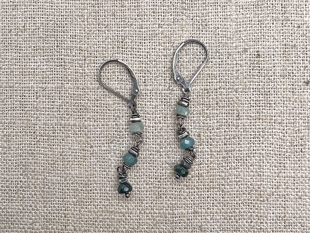 Welcome warmer weather with the Grandidierite Rainfall Earrings. Faceted grandidierite stones trickle down like fresh spring rain. Oxidized Thai silver beads and sterling silver nesting further highlight the gorgeous blue-green hue of these stones. The three stones are separately connected to add a playful touch. Check out the Grandidierite Ombré Bracelet and the Diamond Quartz & Grandidierite Bracelet to complete the look.