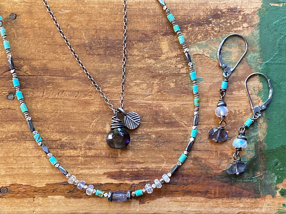 Other pieces in the series include the Turquoise & Thai Silver Bracelet, the Kingman Turquoise Kaleidoscope Necklace, or the Nested Iolite Charm Pendant.