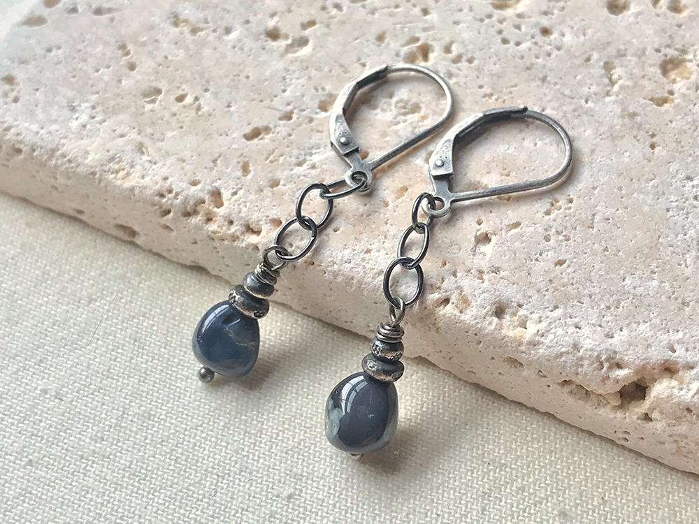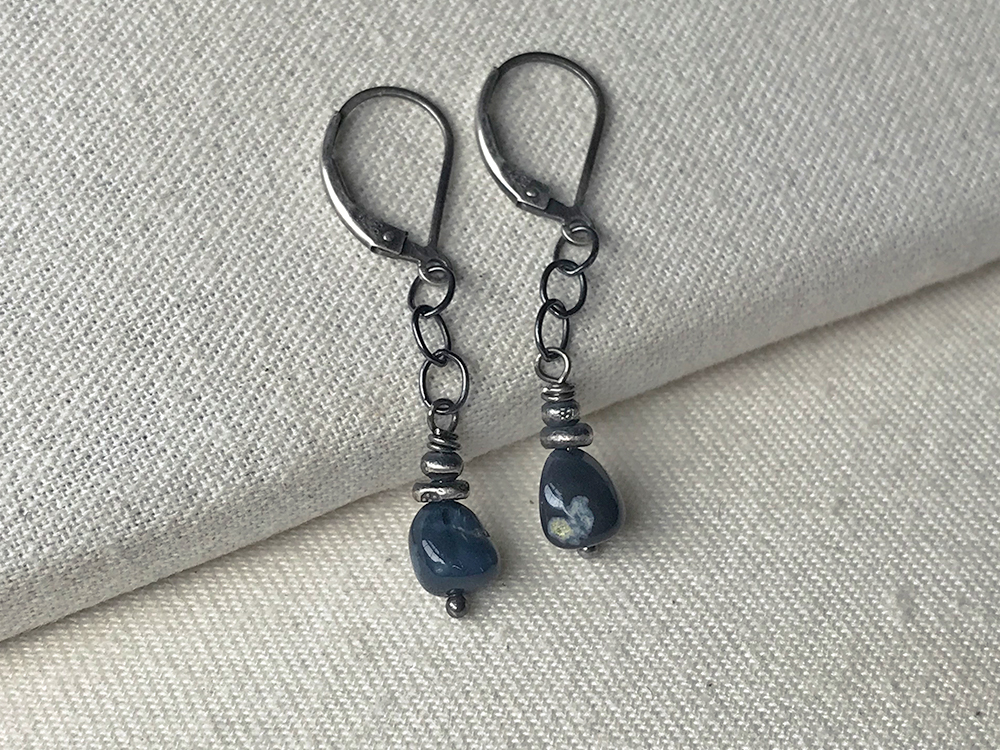 Our handcrafted Australian Opal Earrings are delicate and fun. Oxidized cable chain, Thai silver beads and small polished opal boulders create the perfect balance. Lightweight. Earrings measure 1 inch long with sterling leverbacks. These would look amazing with the Australian Boulder Opal Kaleidoscope Pendant.