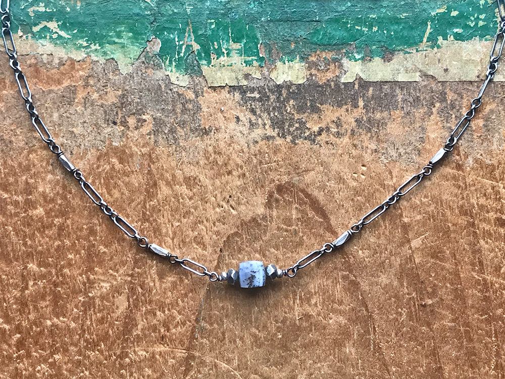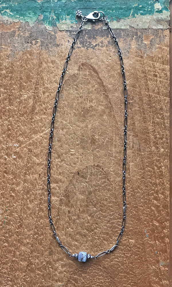 We love the Dendritic Agate Choker Necklace! This piece is a special addition to our choker collection. Dendritic opal with its unique black/white matrix is a great neutral to add to your wardrobe.