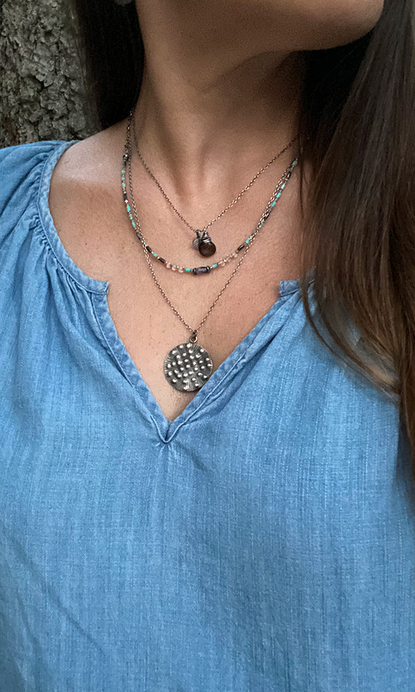 While this piece looks great on its own, this necklace was made to layer! Be sure to check out the Iolite Charm Pendant and the Thai SIlver Medallion Pendant. Also, from the collection check out the Turquoise & Thai Silver Bracelet.