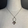 Sapphire, handcrafted sterling oval pendant & Thai silver. Oxidized hand-rubbed patina. Sterling silver lobster clasp and signature daisy charm.